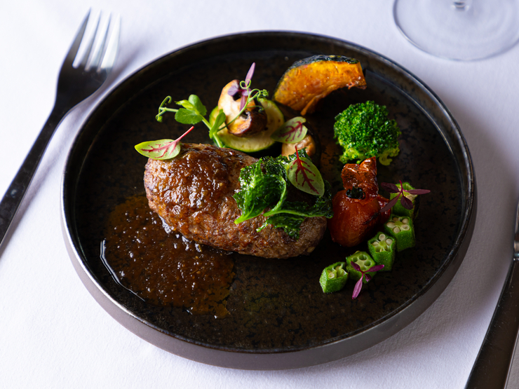 漢方を取り入れた飼料で育った漢方和牛と、フォアグラを取り入れたハンバーグステーキです。贅沢な味わいが融合し、深みのあるコクと風味を楽しめます。